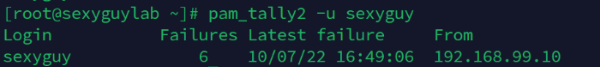ex) # pam_tally2 -u sexyguy - 실패 횟수 및 마지막 실패 시간을 확인할 수 있습니다.