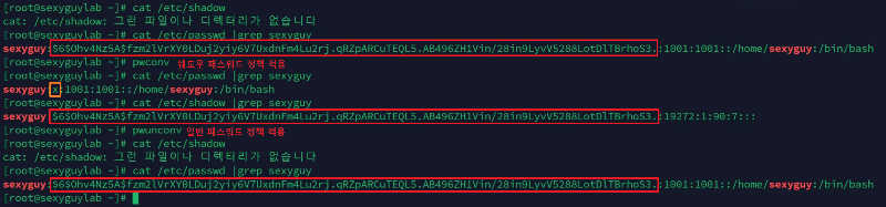 쉐도우 패스워드 정책에서 일반 패스워드 정책을 적용하려면 아래 명령어를 통해 변경이 가능합니다.